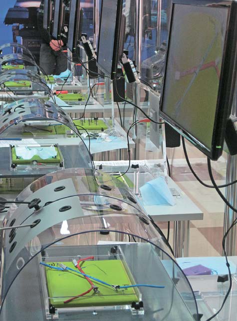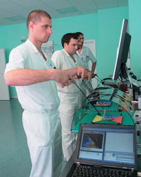 - Во время тренинга экран отображает операционное поле в реальном времени со следами левого и правого инструментов
