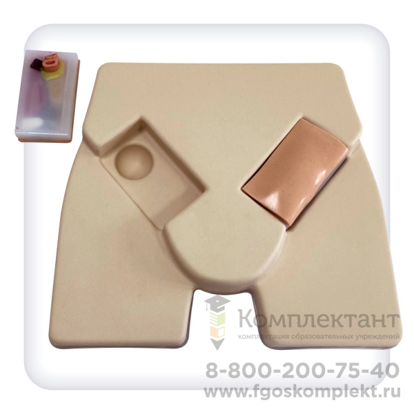 Тренажер представляет собой модель, имитирующую нижнюю часть передней брюшной стенки с паховыми областями и проксимальными фрагментами бедер со съемными вставками. Тренажер предназначен для отработки навыков пластики паховых грыж.