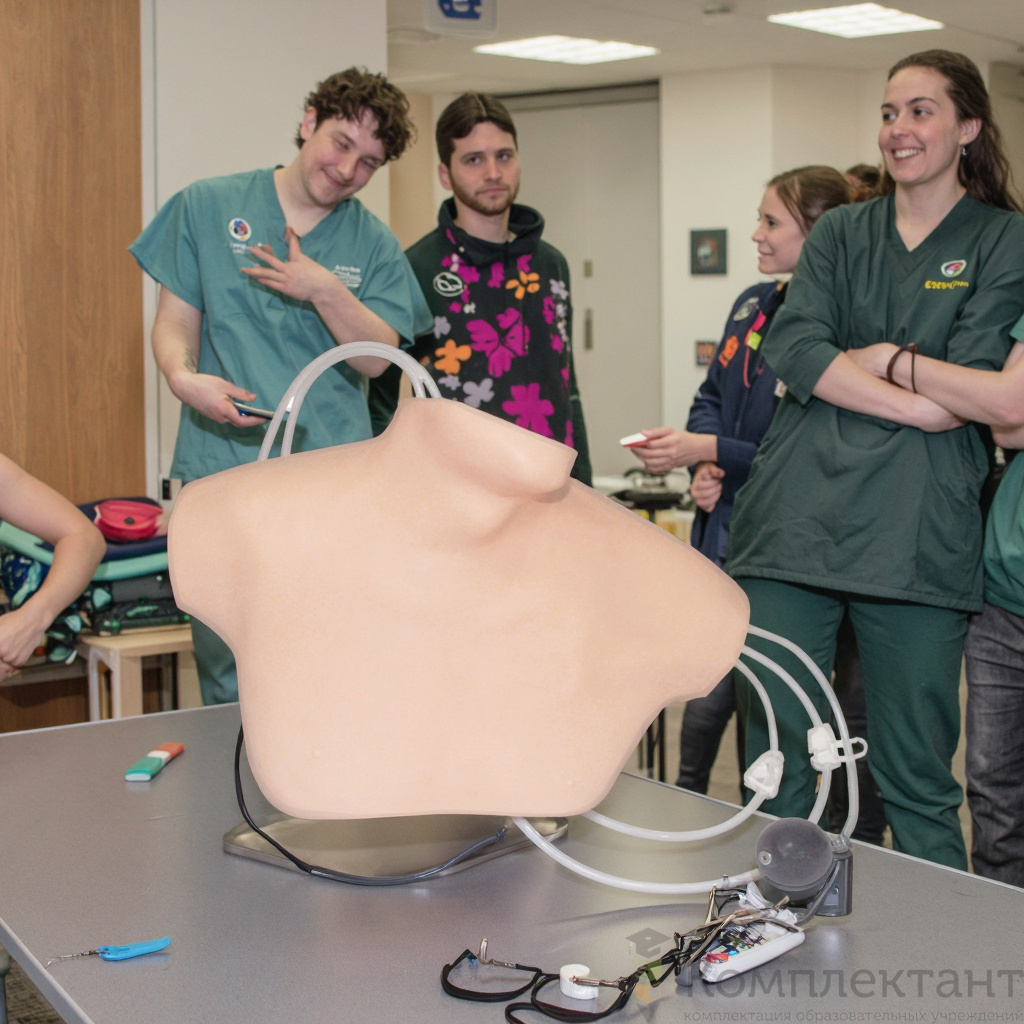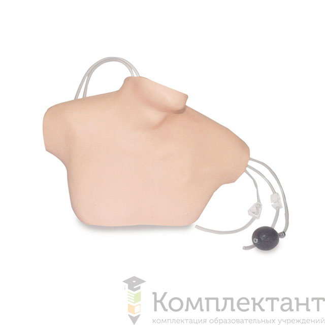 - Модель представляет собой верхнюю часть тела взрослого человека с пальпируемыми анатомическими ориентирами: яремная вырезка, грудино-ключично-сосцевидную мышца, ключица и ребра