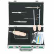 Тренажёр, предназначенный для отработки навыков удаления вросшего ногтя, включает держатель для фиксации пальца, сменный палец и хирургические инструменты.
