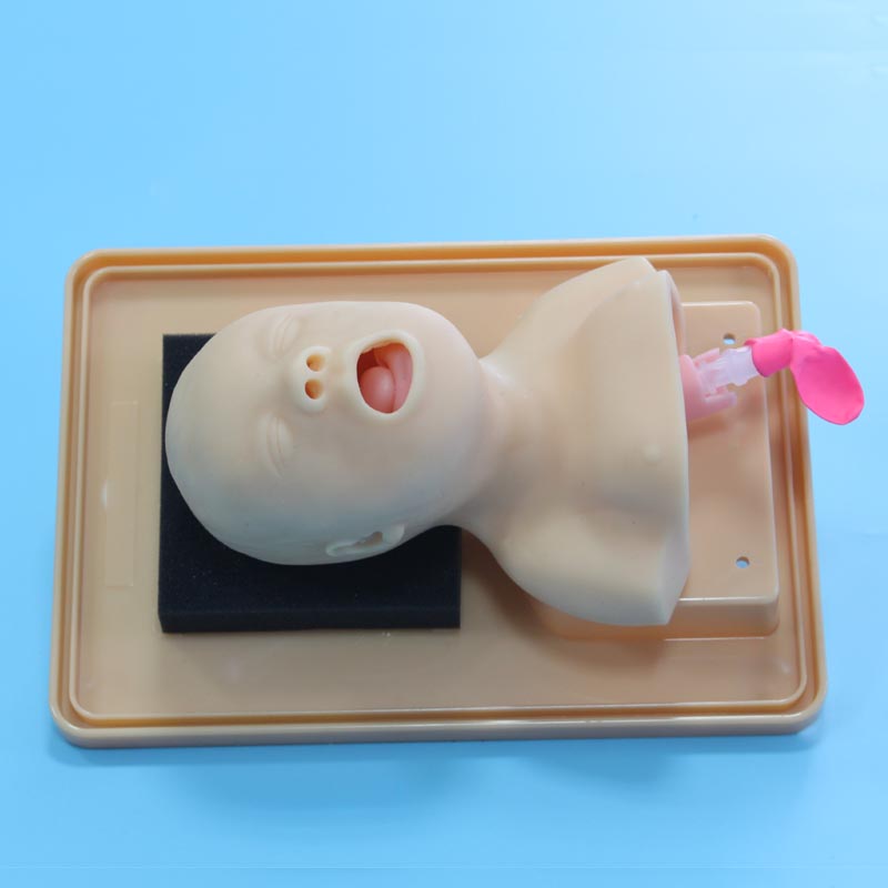 • Тренажер представляет собой модель головы новорожденного с дыхательными путями на подставке