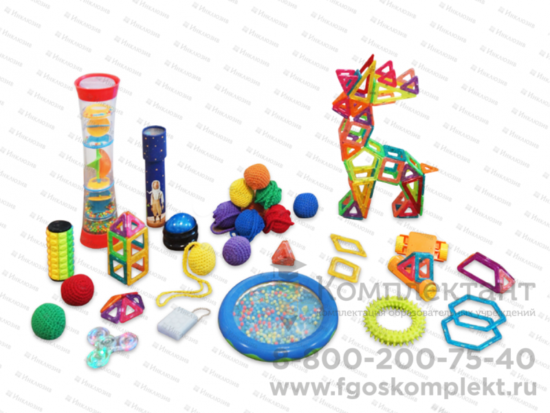 Данный набор направлен на методику снятия стресса у детей, посредством визуально-тактильных предметов набора.