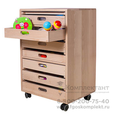 Мобильный стеллаж для хранения модулей изготовлен из натурального дерева (бука) и сконструирован в соответствии с педагогико-эргономическими требованиями, обеспечивает быстрый доступ к дидактическому материалу, простоту обзора и подбора необходимого для занятий материала.