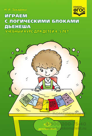 Играем с логическими блоками Дьенеша. Учебный курс для детей 4-5 лет. ФГОС, арт.УТ000001609 В книге изложен систематизированный курс (от простого к сложному), направленный на развитие логико-математического мышления детей среднего дошкольного возраста (4-5 лет). В работе используются логические блоки Дьенеша, а также карточки с условными изображениями свойств блоков (цвет, форма, размер, толщина). Всего в книге описано 24 занятия, каждое из которых содержит 3-4 объединенных одним игровым сюжетом задания. В процессе выполнения разнообразных действий с блоками и карточками-символами свойств дети овладеют различными мыслительными умениями, важными как и для предматематической подготовки, так и для общего интеллектуального развития. Издание адресовано педагогам дошкольного образования.