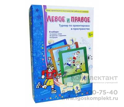 Левое и правое Обучающая игра. Работа со схемами, развитие пространственной ориентации,знакомство с видами спорта. В наборе: 12 игровых полей, 36 маленьких карточек.