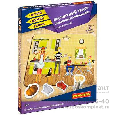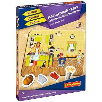 Магнитный теат Мамины помощники( 81 магнит), арт. ВВ4412 Магнитный театр \"Мамины помощники\" - это многослойная магнитная игра, позволяющая создавать многочисленные сюжеты и рассказы на тему домашней кулинарии. Используйте примеры в инструкции и научитесь выстраивать сюжетную линию своего рассказа. Игра поможет развить у ребёнка воображение, память, навыки общения, мышления, моторику, грамотность, пространственную ориентацию. Играть в эту игру можно как с другом, так и одному. Игра для детей от 3 лет. В состав набора входит 81 магнит. Игра позволяет в игровой форме познакомить ребенка с различными предметами кухонной утвари, их функциями, продуктами питания и блюдами, которые можно из них приготовить.