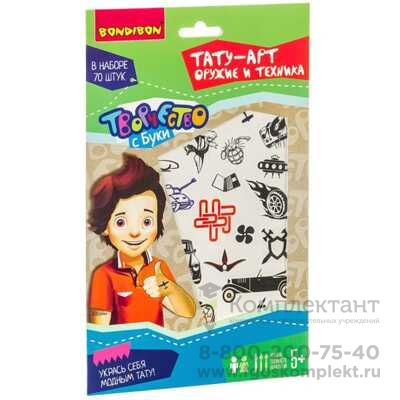 Набор переводных татуировок для мальчиков Оружие и техника 70 шт., арт. ВВ1951. Bondibon (Бондибон) купить с быстрой доставкой в интернет-магазине Комплектант