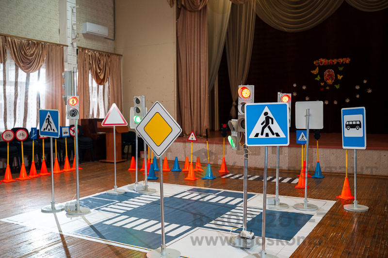 4. Знак дорожный типоразмер 40 на стойке с основанием, Имитация четырёхстороннего перекрестка 11*9м, Учебно-игровой макет "Пост ДПС" , Учебно-игровой макет "Заправка" АЗС (мобильный/стационарный), Бизи-стенд "Светофоры", Бизи-стенд "Перекресток" -, Бизи-стенд "Дорога в школу", Медаль для вручения по результатам изучения ПДД, Набор ролевых жилетов, Учебно-методический плакат "Правила безопасности для пешехода", Учебно-методический плакат "Дорожные знаки пешеходу", Учебно-методический плакат "Дорожные знаки водителю", Жезл регулировщика детский, Веломобили.