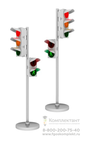 Комплектация: Набор светодиодных светофоров "Четырехсторонний перекресток" мобильный, Набор светодиодных светофоров "Пешеходный переход" мобильный, Светофор "ЖД переезд" мобильный светодиодный двухсигнальный,