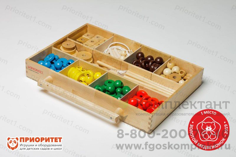 Занятия бывают разные по сложности. Собрать бусы или пирамиду по образцу, нанизать только определенные по форме и цвету бусины. В комплект входят соединительные детали, которые скрепляют деревянные стержни между собой. Это позволяет конструировать объемные фигуры.