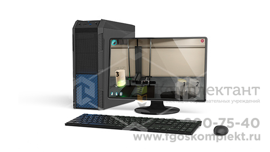 Виртуальная лабораторная работа, в которой реализованы трехмерные модели оборудования: приборы и реактивы. Позволяет наглядно отображать и изучать химические процессы.